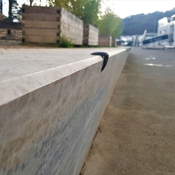 - Plaquage calcaire sous le pont avec pose goujonnée, réalisation d'escaliers et habillage des murs.