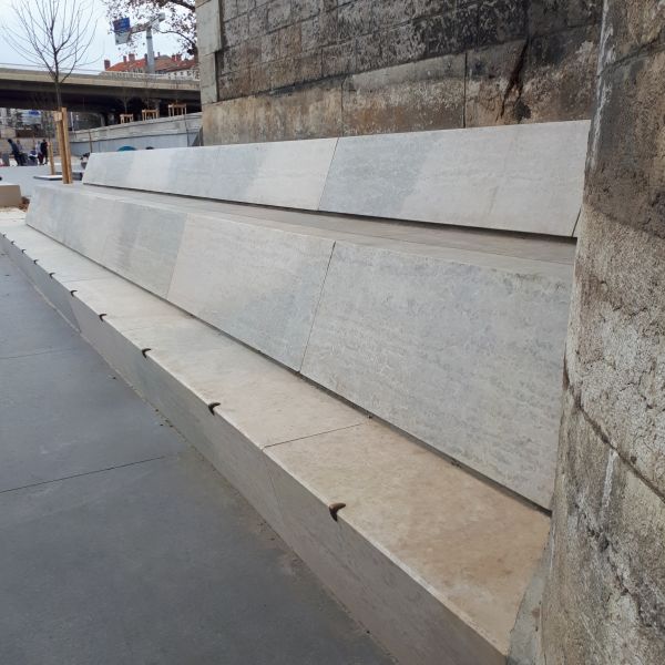 Le rôle de De Filippis Minéral Conseil dans l'aménagement du quai Rambaud a donc été de fournir et poser du mobilier urbain en pierre naturelle sur une longueur d'1 km.