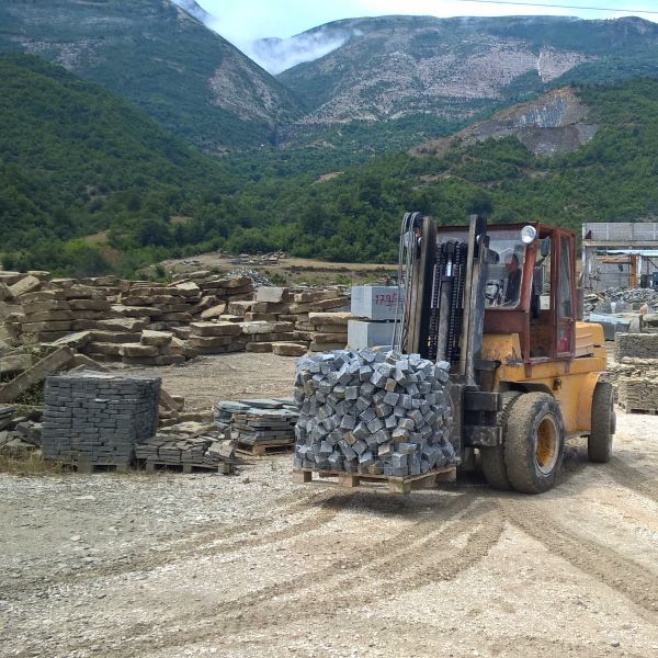Notre partenaire Albanera, dont nous sommes le distributeur exclusif sur le territoire français, est un extracteur et transformateur d'un grès albanais gris-bleu anthracite et beige-ocre. Ce grès extrait dans une zone de moyenne altitude (1000 à 1200 m), possède une résistance totale au gel (168 cycles, soit le maximum selon la norme EN NF 12371 de mai 2010) ainsi que des valeurs de résistance à la flexion exceptionnelles (valeur moyenne à 20.3Mpa, valeur minimale attendue à 14Mpa).