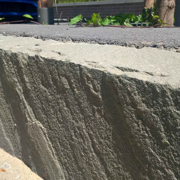 Outre l'originalité esthétique du panachage grès foncé, calcaire clair, les matériaux sélectionnés ont l’avantage de pouvoir être fournis en grande quantité, et avec d'importante capacité de production.
