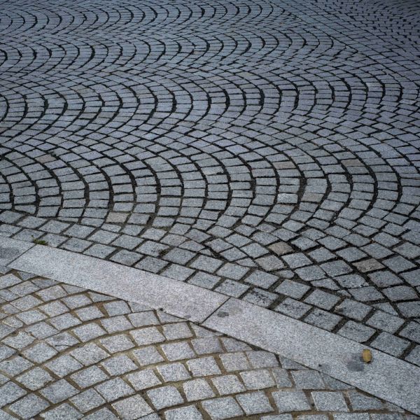 La particularité de ce chantier réside dans la pose de pavés en queue-de-paon avec joints émulsion. Les équipes de pose ont une réelle expertise dans ce domaine.