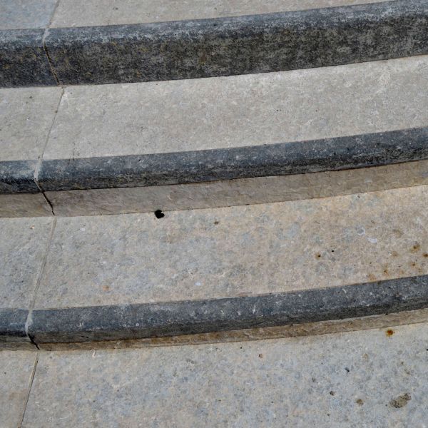 La technicité de ce chantier relève dans la précision d'usinage des ses pièces minérales : courbes nombreuses, pièces massives à l'usinage fin, couplage de deux calcaires différents pour les marches/contremarches.
