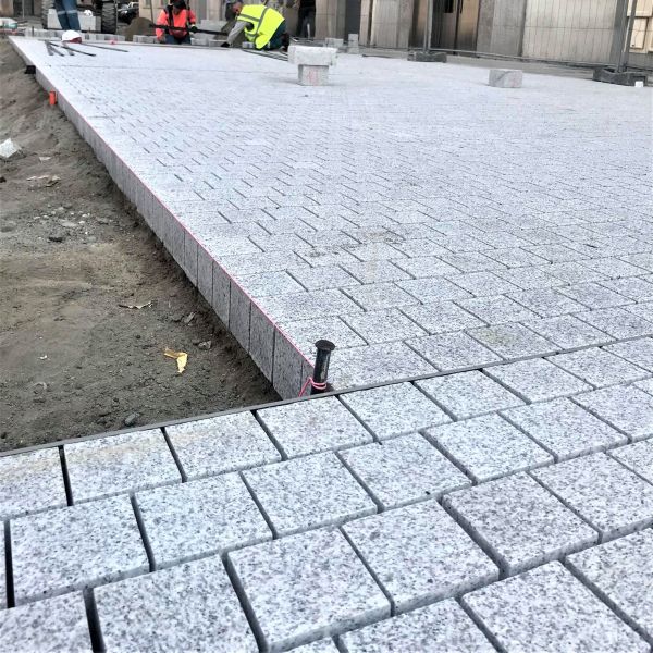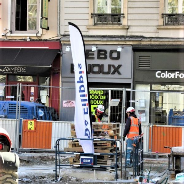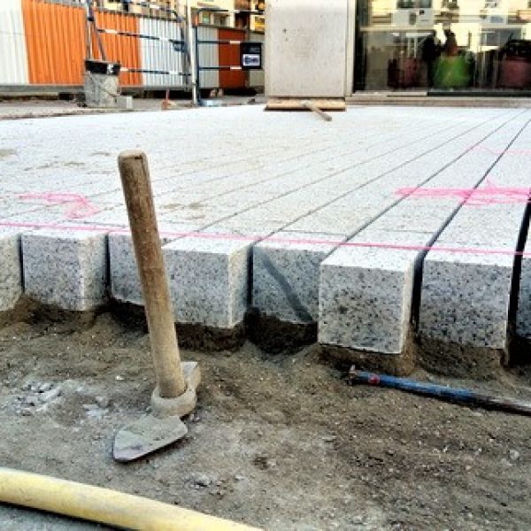 De Filippis suit la fourniture et la mise en place des pierres naturelles sur ce chantier d'envergure et très contraignant en terme de circulation piétonne.