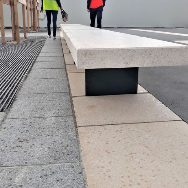 Rault Granit, filiale bretonne de De Filippis a fourni le dallage en granit de Lanhélin.
