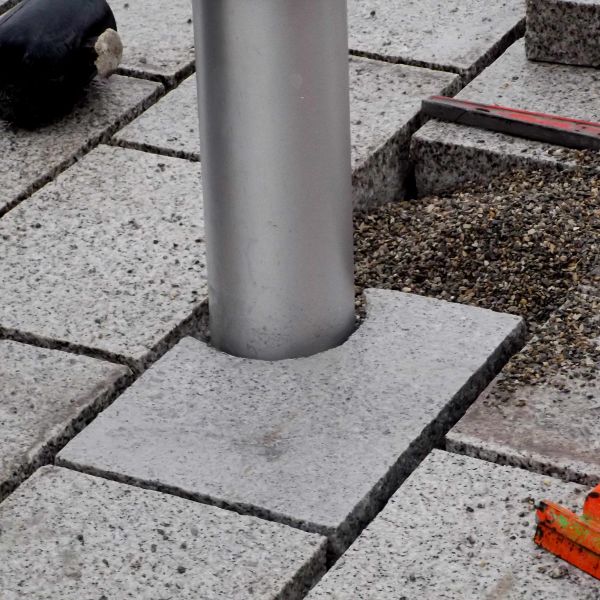 Outre l'importance des surfaces linéaires et des personnes mobilisées pour la réalisation de ce chantier, c'est surtout par le délai de réalisation extrêmement court (1 an), que la réussite de cette opération se caractérise. En effet, une répartition et organisation efficaces des équipes de pose, couplée à une logistique bien rodée (approvisionnement de ces équipes en pierres naturelles) ont permis de tenir ces délais.