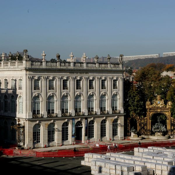 L'Agence de Ludres a débuté le 15 juillet dernier le chantier de renouvellement du sol de la Place Stanislas classée au Patrimoine Mondial de l'UNESCO. Cette opération a été réalisée sous maîtrise d'œuvre de l'Architecte en Chef des Monuments Historiques. Les travaux ont consisté au terrassement général de la place, qui a été réalisés en coordination avec l'INRAP. De forme parabolique (parapluie), le profil de la Place a été réglé lors de la mise en œuvre de la GNT B au moyen d'une niveleuse équipée en station totale. La grave bitume (couche de base) a été ensuite tirée en vis calée. Avec l'aide de la Direction Technique, il a été proposé au client la pose des pavés sur lit de gravillon 2/5 (sable dur origine SOLODET). Ce procédé a permis la pose des pavés par températures légèrement négatives (jusqu'à -2°C) ce qui aurait été totalement impossible avec un lit de pose en mortier. L'exécution des joints s'est décomposée en 2 phases : remplissage à mi-hauteur avec du gravillon duro 2/5 et mise en œuvre d'un mortier haute performance LANKO en partie supérieure. Ce mortier blanc a fait l'objet d'une fabrication particulière : ajout de colorant et de granulats en usine pour obtenir l'aspect souhaité par l'Architecte en Chef des Monuments Historiques.